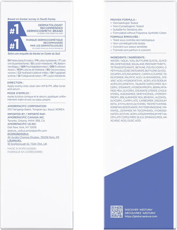 آب، بوتیلن گلیکول، گلیسرین، دایمتیکون، اسکوآلان پنتااریتریتیل تترا ایزواستئارات، بتائین، پلی گلیسریل-۳ متیل گلوکز دی استئارات، بوتیلن گلیکول دی کاپریلات/دی کاپرات، کاپریلیک/کاپریک تری-ایگلیسرید، اسید پالمیتیک، ۱،۲-هگزان دیول، اسید استئاریک، کوپلیمر هیدروکسی اتیل اکریلات/سدیم اکریلوئیل دی متیل تائورات، گلی-سریل استئارات، هیدروکسی پروپیل بیسپالمیتا-مید MEA، گلیسریل استئارات سیترات، کلسترول، نیاسینامید، دایمتیکونول، هیدروکسی پروپیل بیسلورامید MEA، بهنیل الکل، گلیسریل کاپریلات، کربومر، دی سدیم EDTA، اتیل هگزیل گلیسیرین، ترومتامین، سوربیتان ایزواستئارات، فیتوسفنگوزین، MA-N-N، سرامید NP، توکوفرول، لسیتین هیدروژنه، کوپلیمر اکریلات/آمونیوم متاکریلات، سیلیس، اسفنگولیپیدها، اسید آر-آشیدیک، اسید اولئیک
